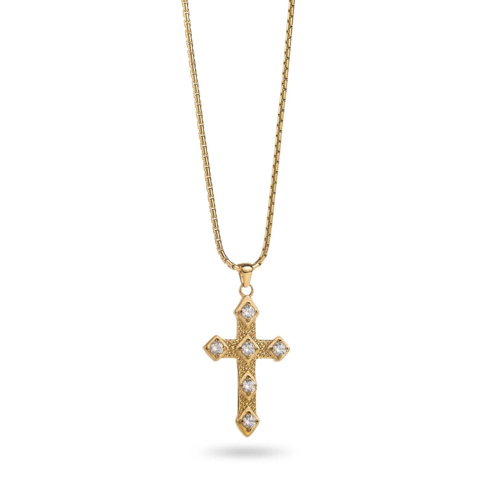 Ce bijou raffiné allie la foi et l’élégance. Orné de cristaux scintillants, ce pendentif croix doré s’accroche à une chaîne fine et brillante. Une pièce à la fois spirituelle et sophistiquée, parfaite pour toutes les occasions.