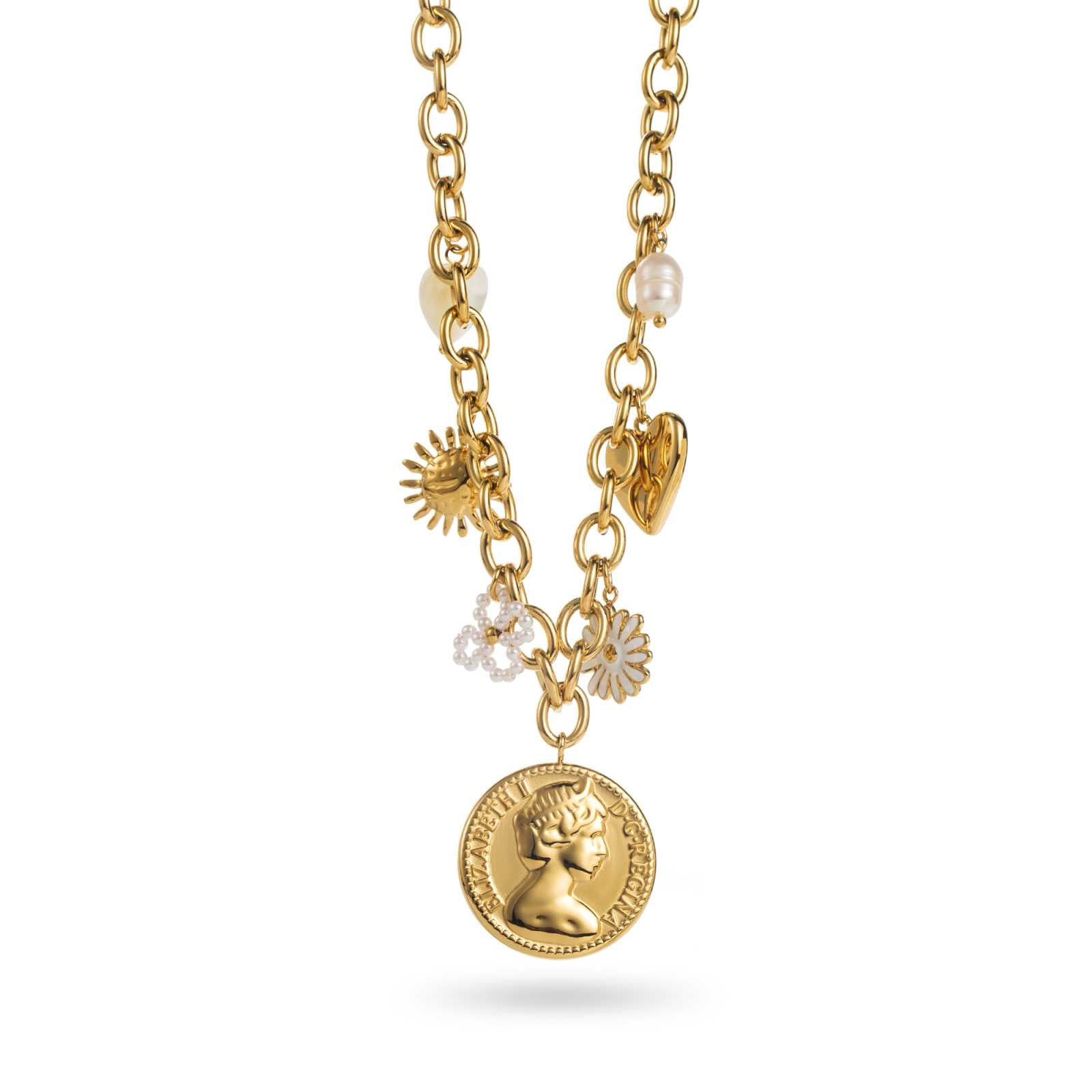 GOLDEN MUSE, un collier majestueux doré qui allie charme antique et esprit bohème.