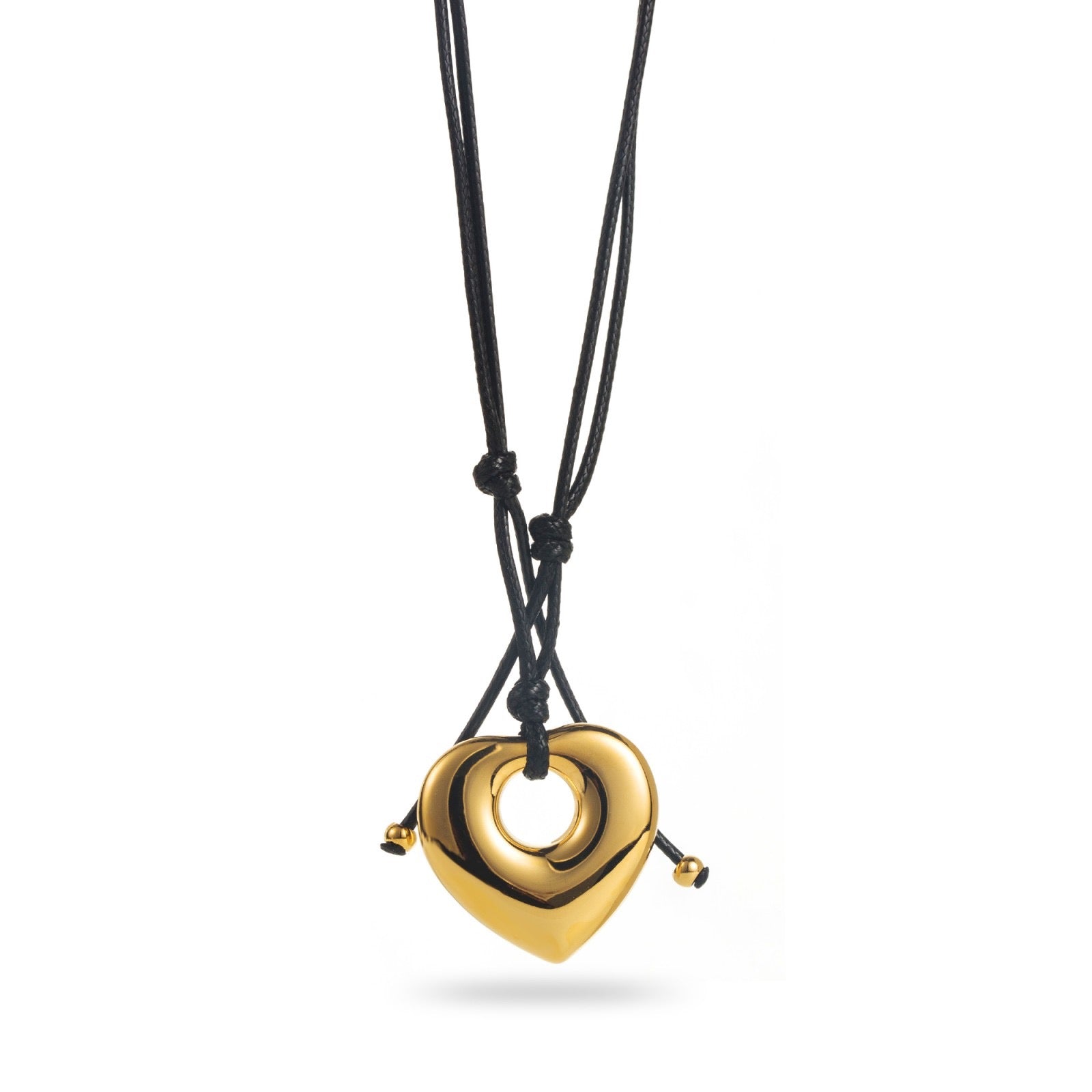Un symbole d’amour intemporel. Le collier SELENA présente cœur doré éclatant, suspendu à un cordon noir réglable pour un look moderne et décontracté. Il incarne l’élégance minimaliste avec une touche sentimentale.